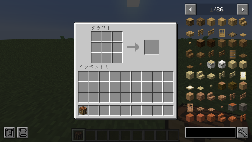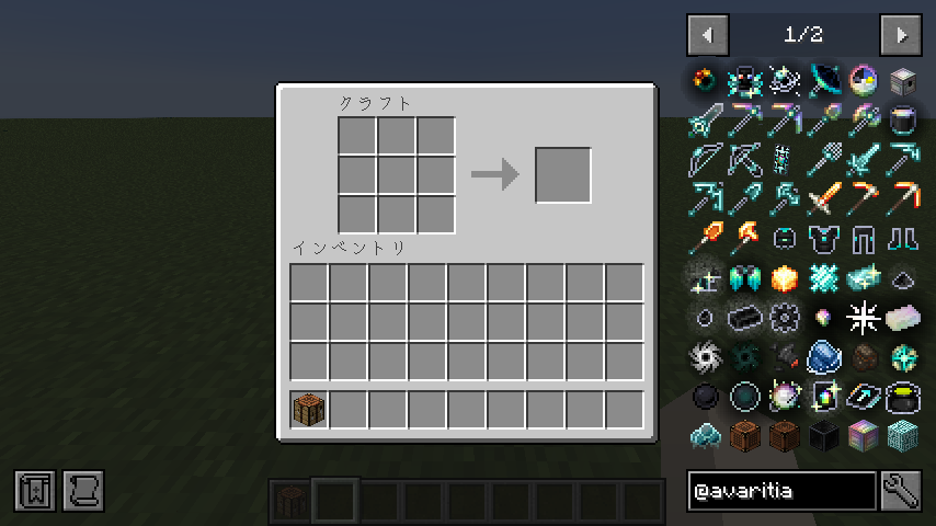 Eキーやチェスト、作業台などでインベントリを表示すると、以下の画像の用に右側に、アイテムの一覧が表示されます!