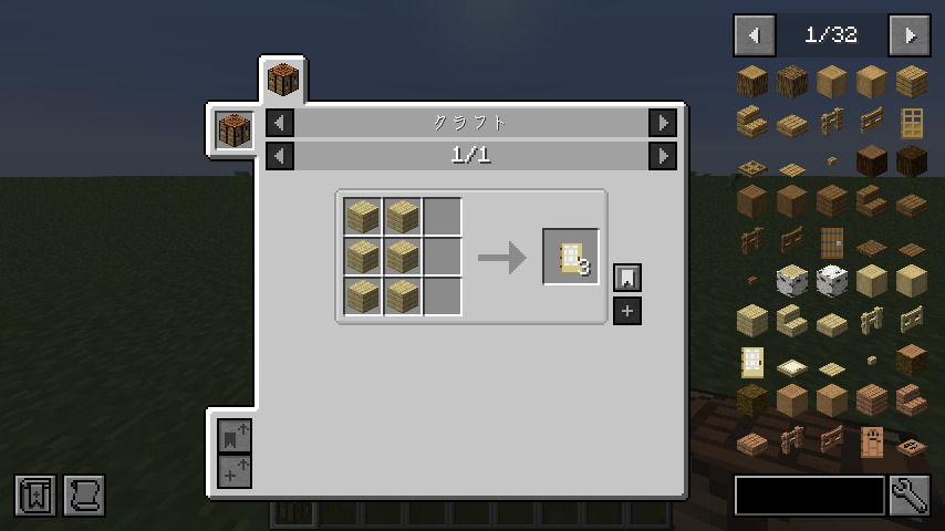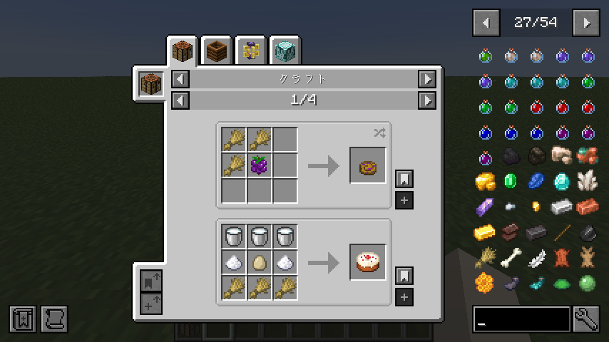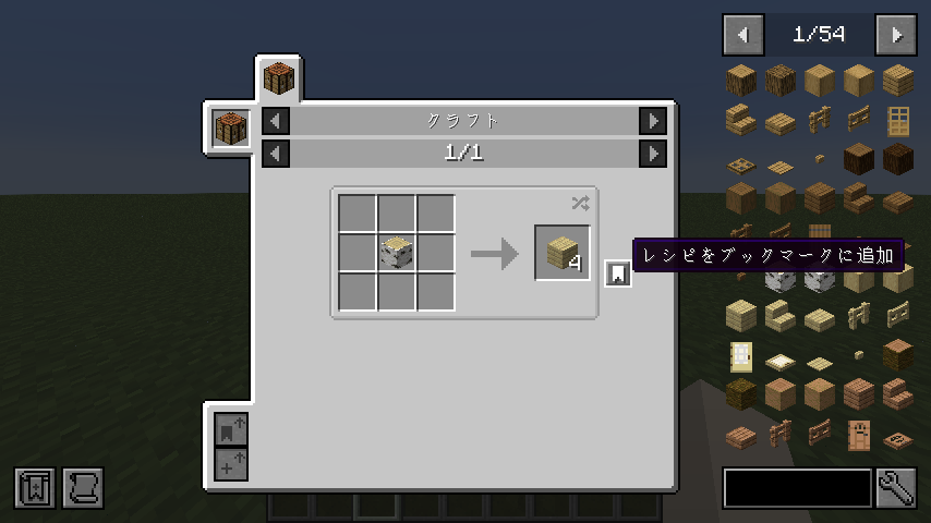また、JEIでは、必要なアイテムを持った状態でレシピプレビュー画面の右下のプラスアイコンを押すことで、自動で作業台にセットしてくれます!