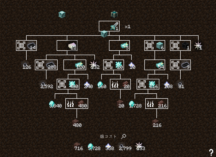 この剣のレシピツリーを良い感じにすると最終的にこうなります!
